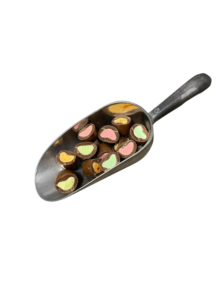 Choc Clangers are a classic with three different centres you don't know which one you'll be eating until you bite into it. It's just like a crunchy crisp honeycomb like centre with either strawberry, pineapple or melon.
