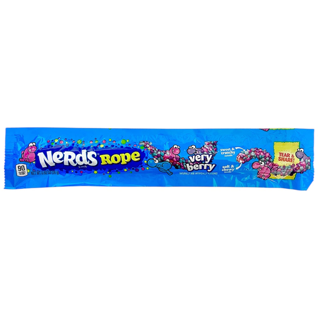 Nerds Rope Very Berry is a stretchy gummy rope covered with tiny, tangy, colourful, berry blend flavoured Nerds.